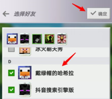 7.之后,在好友列表内,勾选好友,点击确定。好友接到邀请后,就可以进入房间一起游戏。