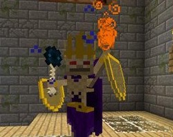 2.需要在他的法杖顶部发出蓝光的时候,就是它发射末影眼球的时候用铁剑反弹给他,破了他的防御盾,这样打起来就比较好打。需要注意的是当然他法杖是红色的时候要赶紧躲,因为他准备放火球了,爆炸范围巨大。如果被正中或距离爆炸中心较近时会受到较大伤害。