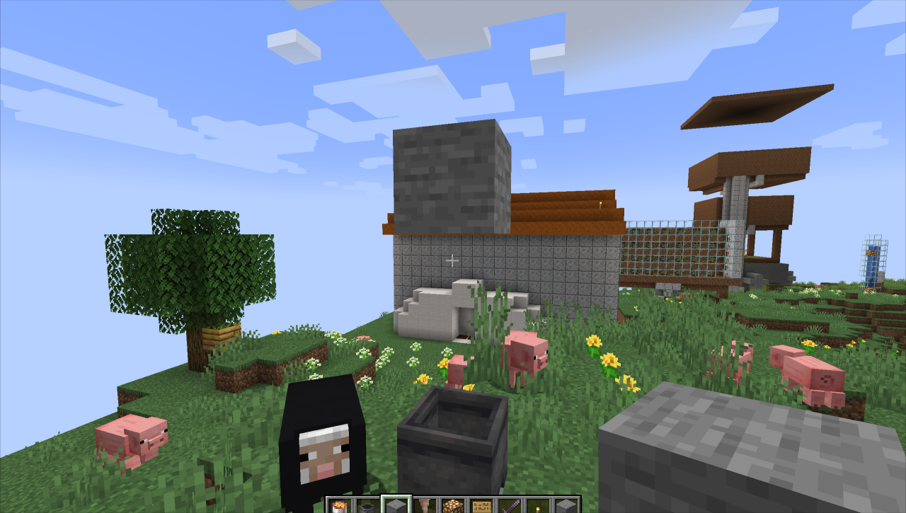 2、然后在锅上放置三个方块。