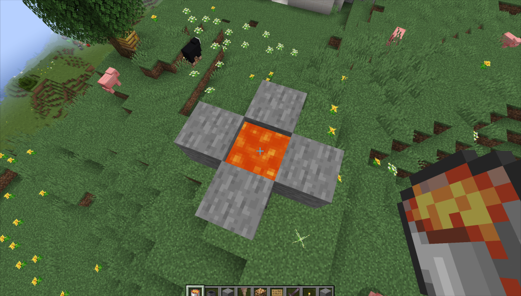 8、到上面可以发现岩浆并没有消失,无限岩浆达成,如果岩浆需求多的话可以多做一些这样的装置。