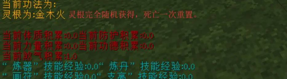 2.然后按G键,可以看到一些属性面板,我们可以看到我们的灵根,灵根很重要,因为什么灵根学习的就是什么功法,例如图中是金木火三个灵根,则可以学习金木火三种功法,其他属性的功法是不可以学习的,所以大家开始修仙的时候要先选择什么属性。