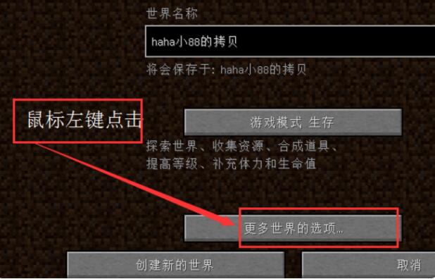 3、在“重建”中,使用鼠标左键点击一下“更多世界的选项”