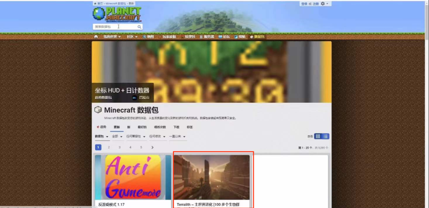 2、进入网站点击我的世界,然后选择数据包,点击。
