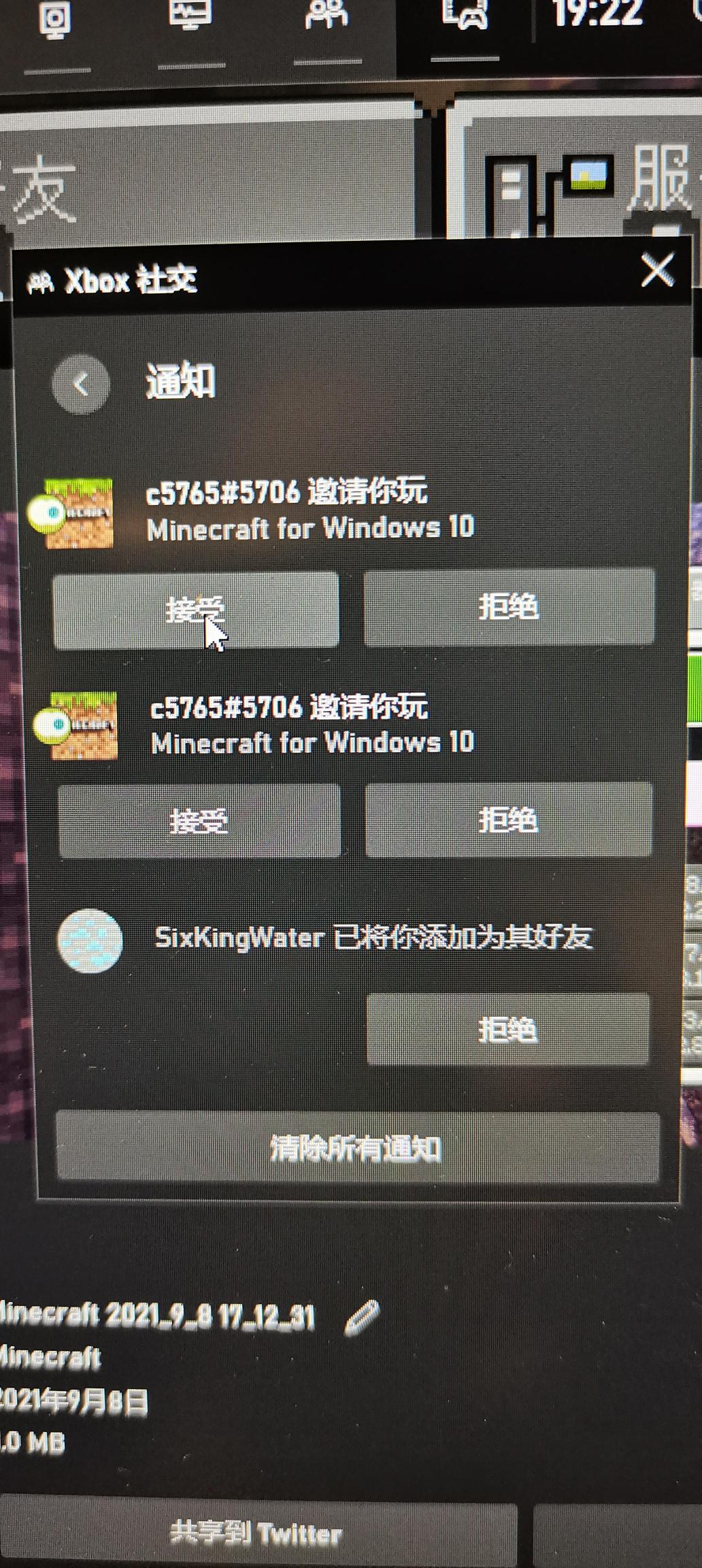 5.你的好友收到邀请后,需要按住开始键+G,进入Xbox社交,接受邀请,即可进入游戏,你和你的小伙伴就能一起玩了。
