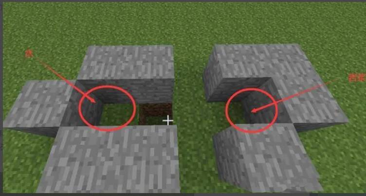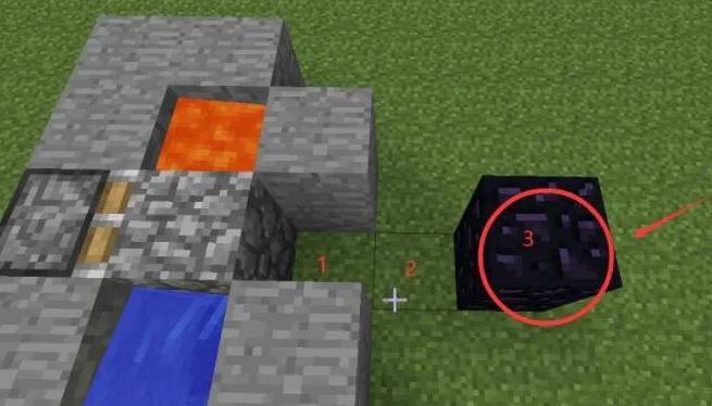 3.我们将一个黑曜石放在缺口旁边,这个黑曜石的作用就是为了防止石块推得太远。