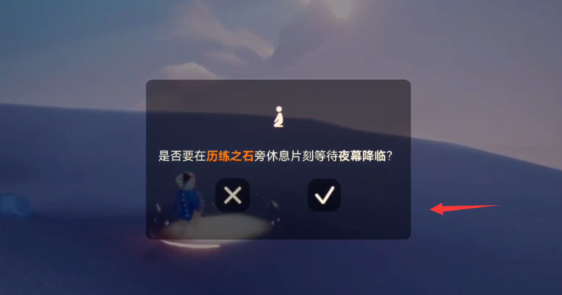 3、会出现“是否要在历练之石休息片刻等待夜幕降临”,点确定图标;