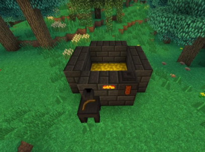 3、放置浇筑台和铸造盆并且在排液口上浇筑口,在燃料罐内放入岩浆后即可。