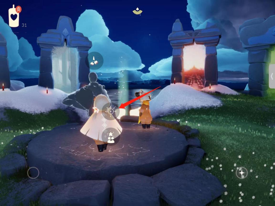 1、首先进入游戏,在游戏中的遇境内,有一块石头,站上去可以点击上面的先祖图标。