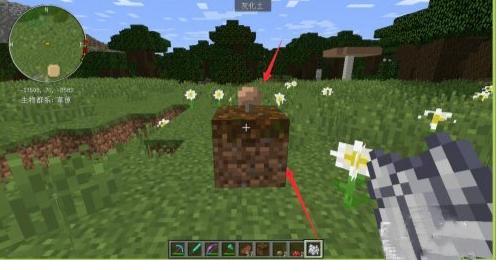 3、第二种是找到灰化土,这种土一般在云杉木林中有,直接将蘑菇右键到灰化土上面,然后用骨粉催熟,右键骨粉多点几下就可以使蘑菇长大了。