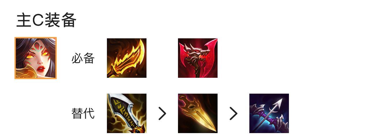 3、主C霞的必备装备是羊刀、德莱文之斧,替代装备是无尽、投机者之刃、轻语。