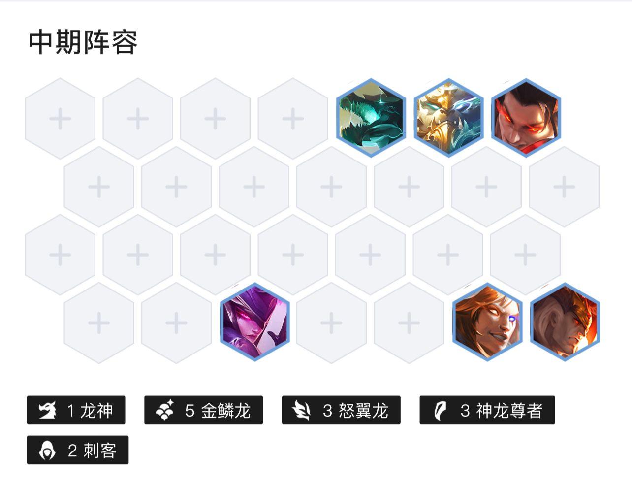 1、在金铲铲之战S7赛季中,金鳞龙的阵容如下所示,是由7金鳞龙、1窃法巧手、1龙神、3怒翼龙、3神龙尊者、2狂刃战士组成。