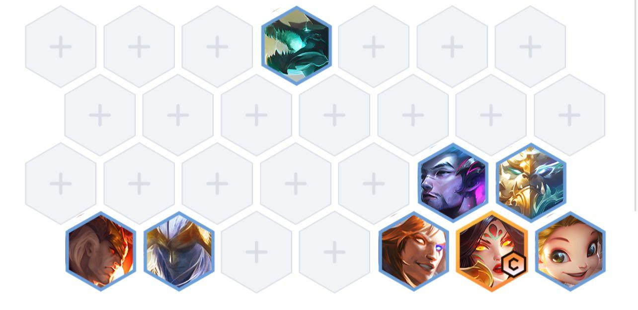 6、前期阵容:塔姆、瑟提、慎、亚托克斯在第一排抗伤,赛娜在最后一排输出。