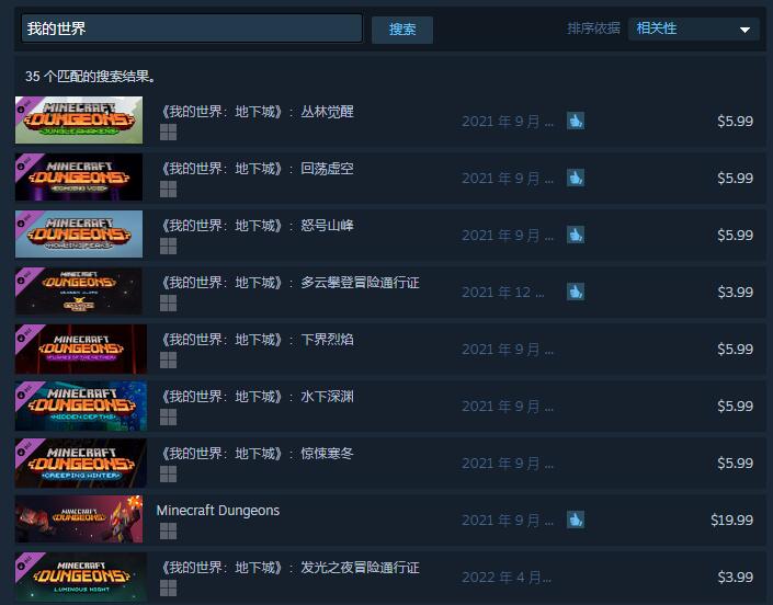 2,然后就会发现Steam上只有我的世界地下城可以买,是不可以买我的世界原版的。