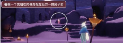 4、下一个先祖在向导先祖右后方房子前,最后一个先祖剧场内舞台右前方机关旁,找到后回向导处交任务即可。