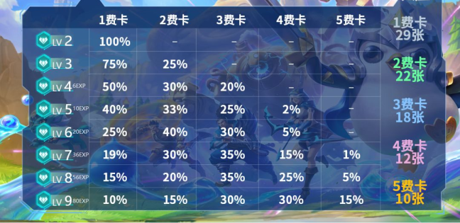 一.首先是牌库的数量分别是一费卡29张、二费卡22张、三费卡22张、四费卡18张、五费卡10张。