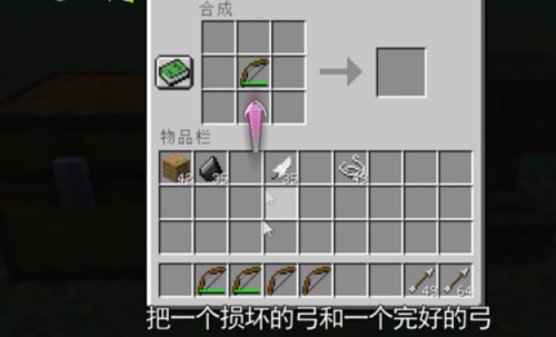 两个旧的弓放入合成框中可以生成一个新的附魔弓,这样修复就完成了。