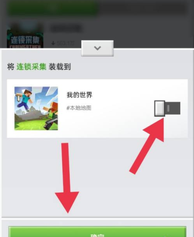 2.然后输入连锁采集,并点击该资源。然后点击底部的装卸,选择你要开启的存档,最后点击底部的确定即可。