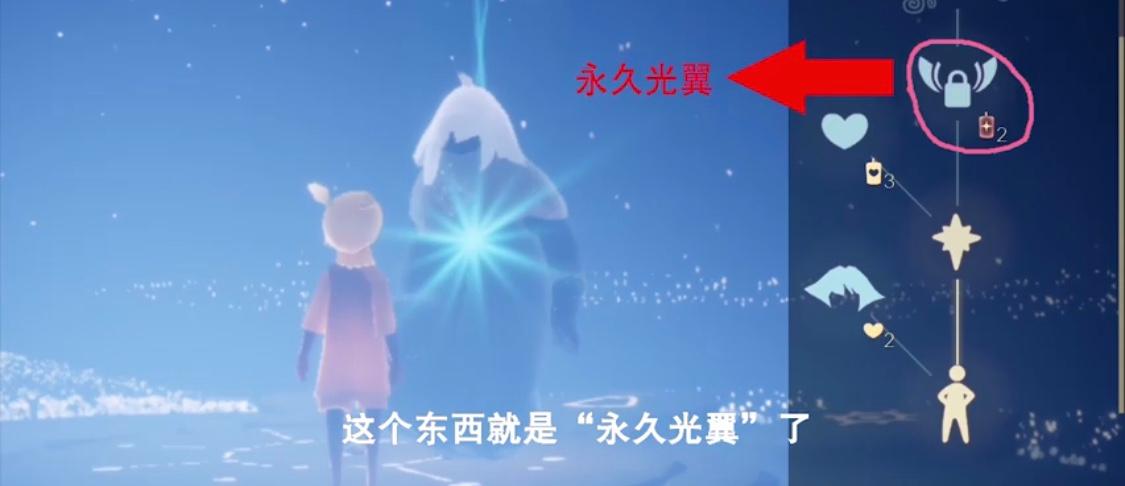 4、站在圆形石找到先祖,解锁节点即可得到永久光翼。复刻先祖也是一样,同样解锁节点即可得到永久光翼,而永久光翼就会在重生之门前。