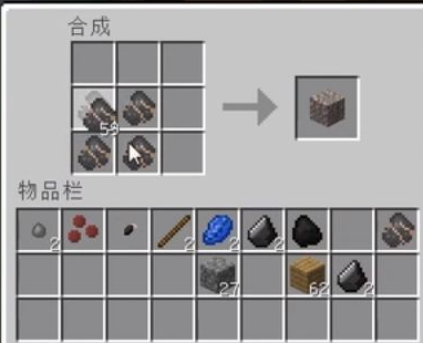 22.用燧石和烧制的铁锭合成打火石,给坩埚底下打火。把圆石右键放进去烧岩浆。得到的岩浆和水可以 做刷石机,得到无限的圆石。