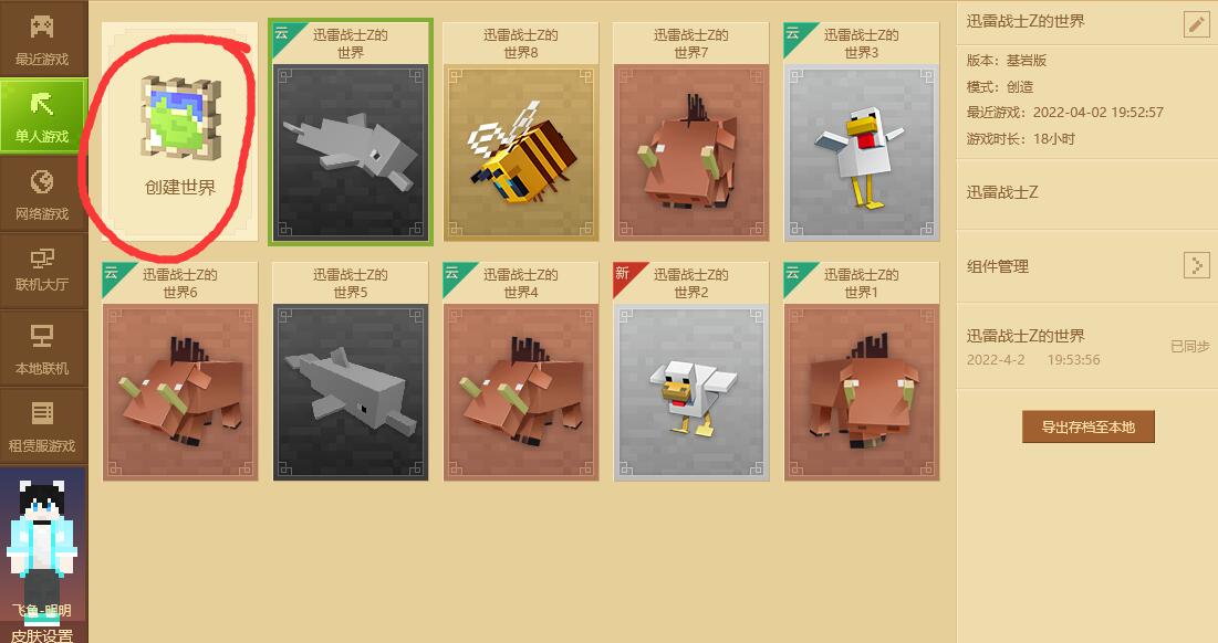 1,首先我们进入我的世界创建游戏的界面,点击创建世界。
