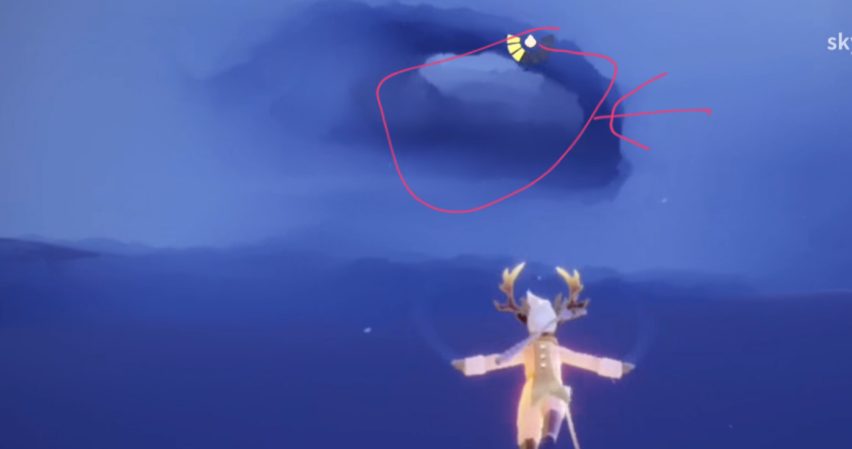 2.可以看到前方有一个云洞,往云洞方向飞。