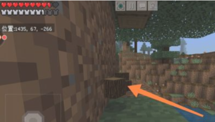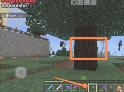 2.然后,我们来到野外,砍伐橡木。砍伐橡木后,可以获得项目块,靠近之后,拾取即可,