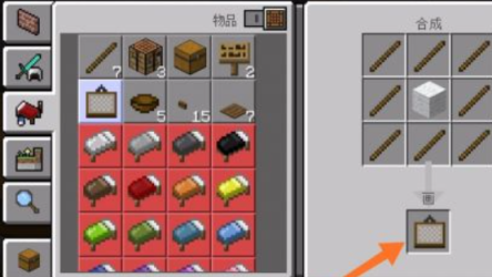 5.羊毛获取之后,我们来到工作台附近,点击工作台,搜索画,材料已经凑齐,可以制作画,点击即可制作,