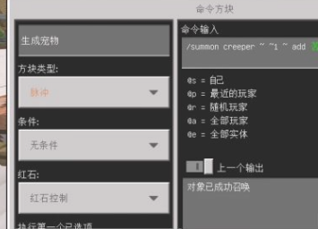 2.我们用可以命令方块生成一只苦力怕。