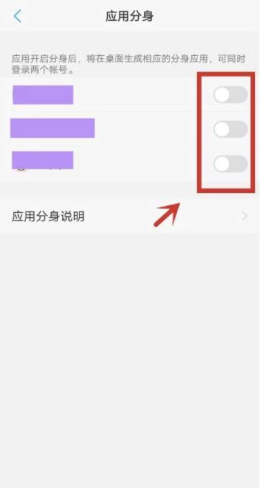 4、然后在里面可以看到自己已经安装,且可以分身的应用,点击后面的按钮,可以开启应用分身,如图所示。