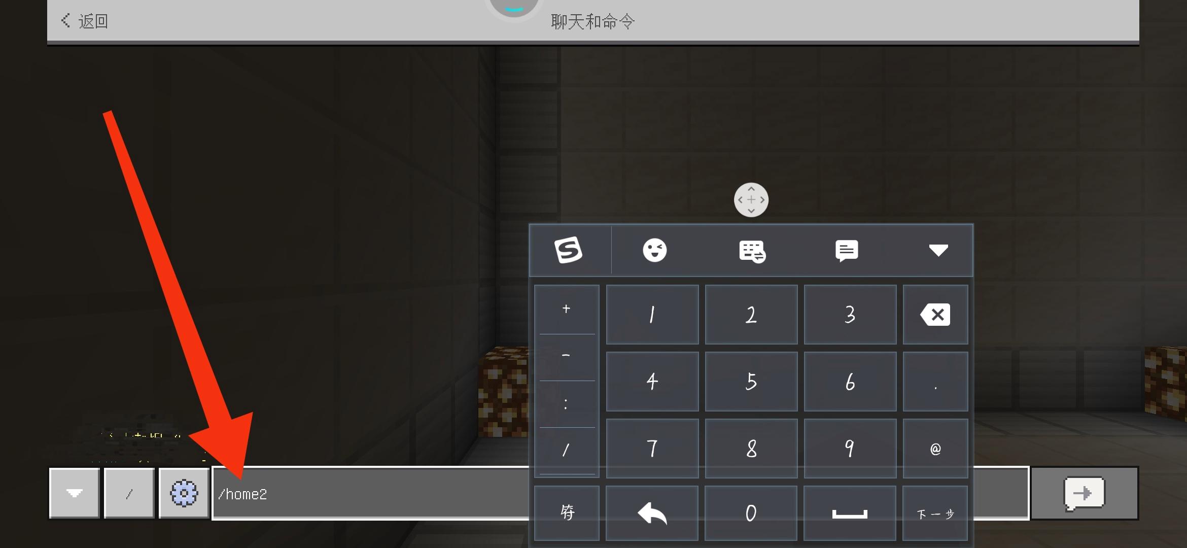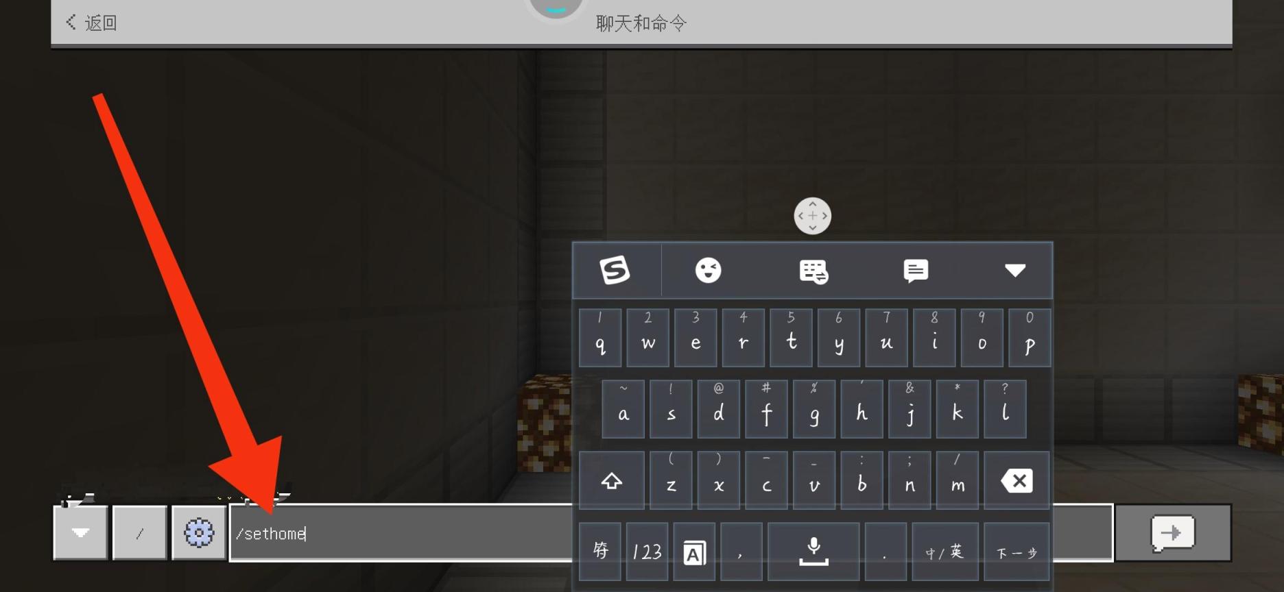 1、在游戏中按出输入框,输入指令“/sethome”。