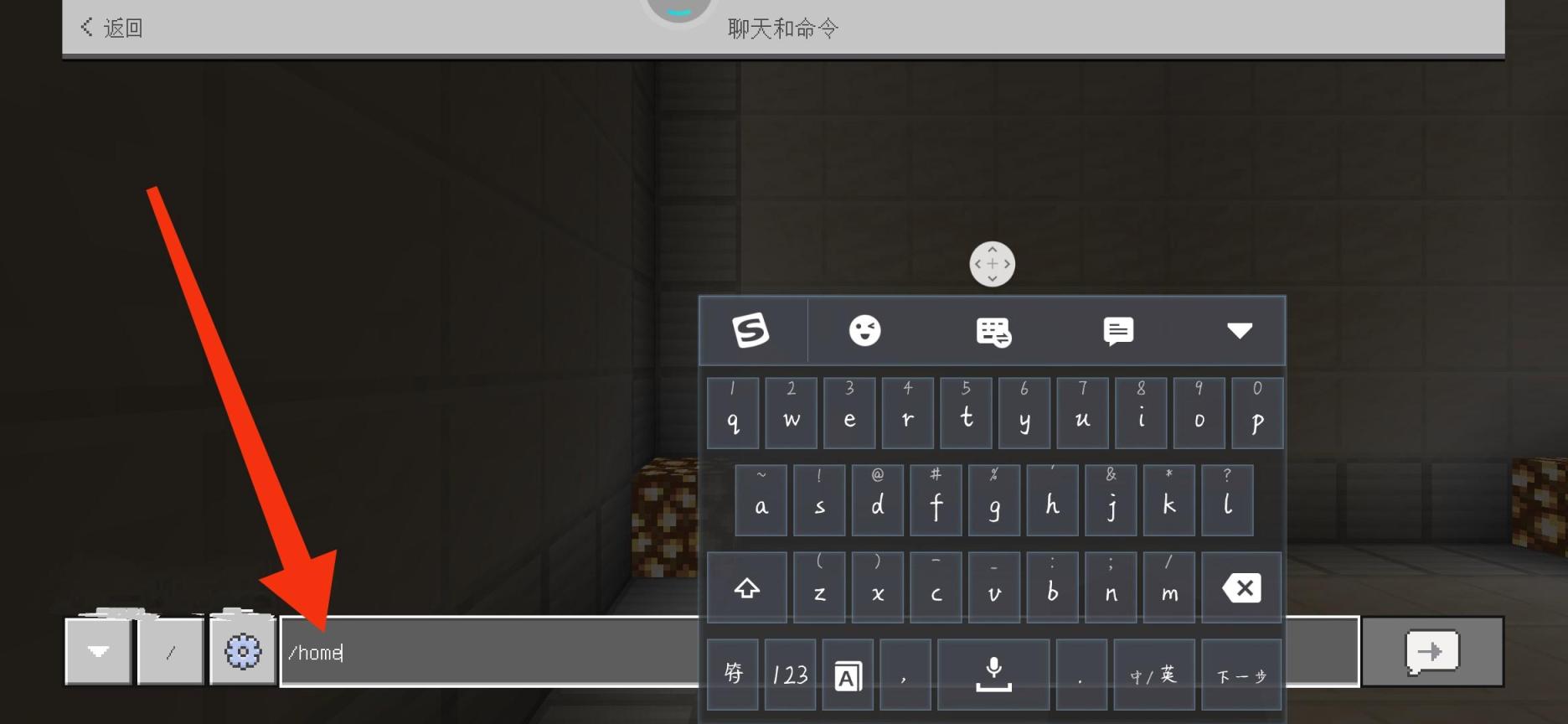 2、添加指令成功后,在输入框中输入“/home”即可立即回家。
