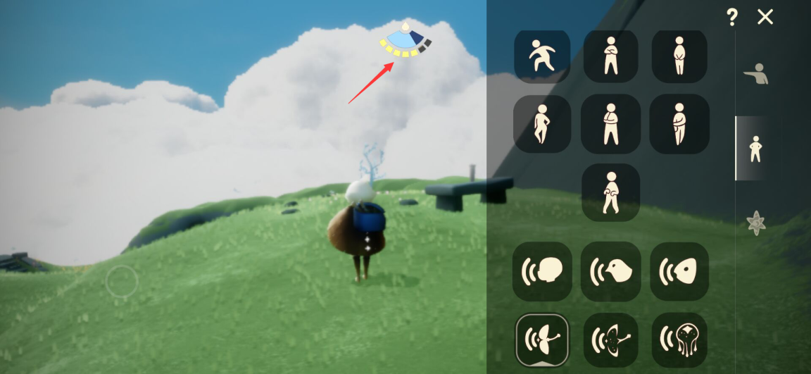 1、首先点击头顶上的黄色标志,打开动作栏