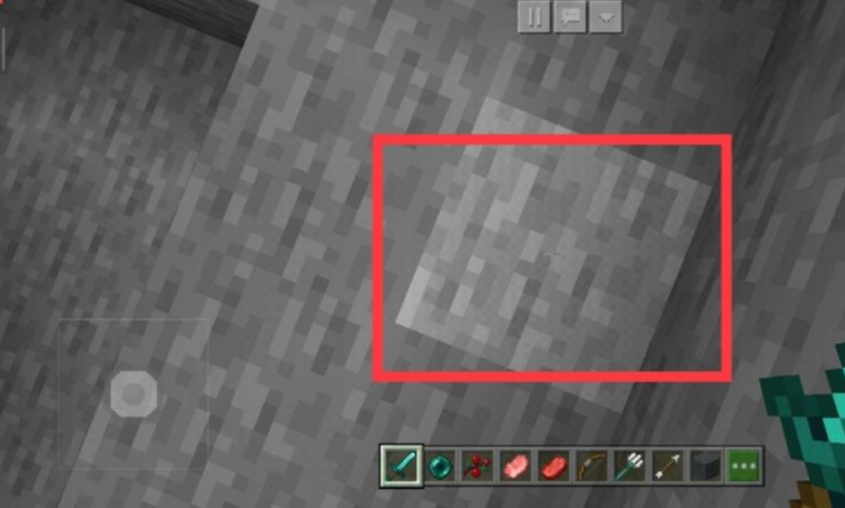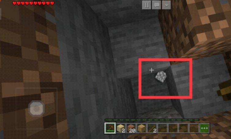 3、看到石头之后就换成木搞挖,按住石头不放,过一会儿就会挖好石头,如下图所示。