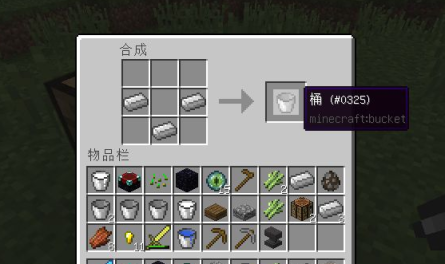 3.使用铁锭用来合成一个铁桶,需要三块铁锭。