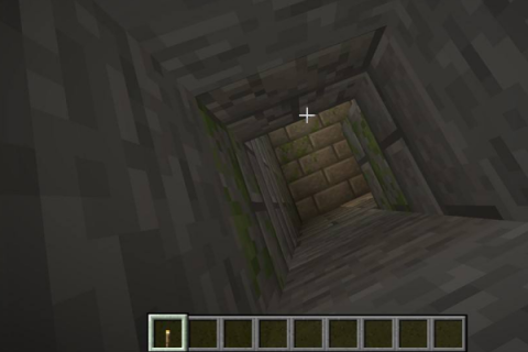 4、到达地牢上方,再垂直向下挖掘方块。