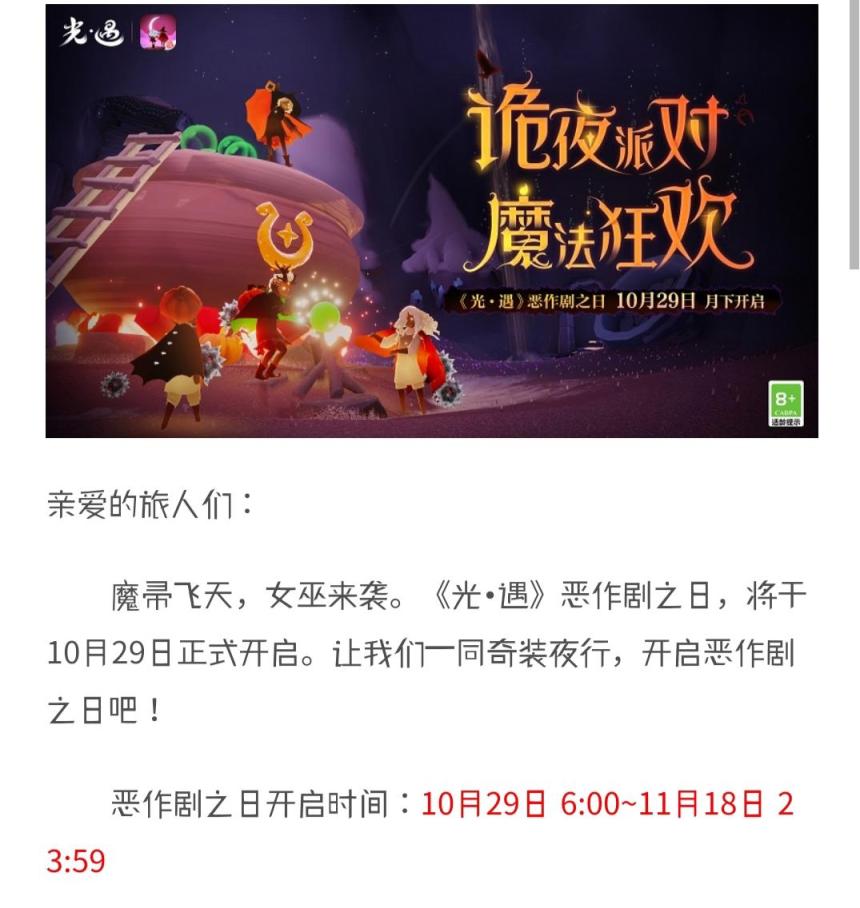 光遇万圣节活动什么时候结束?
