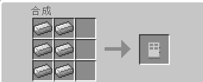 2、铁门的制作:需要铁锭,铁锭用开采的铁矿石烧炼而成,和木板门做法一样需要六个铁锭。