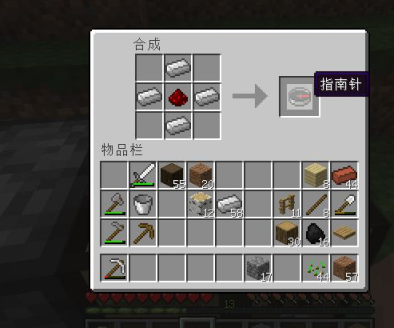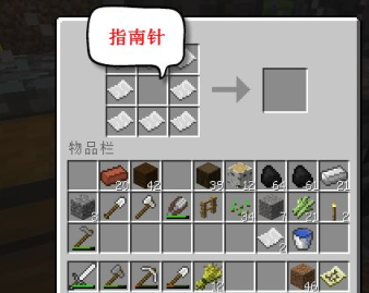 1.Minecraft中地图是通过指南针和纸合成,首先将红石和铁锭合成指南针。