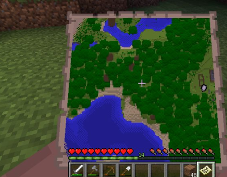 4.完成后,将地图放入物品栏,切换至手中就会显示地图。