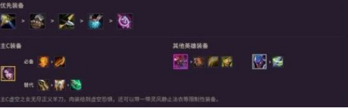 主c虚空之女无尽正义羊刀,肉装给到虚空恐惧,还可以带一带灵风静止法衣等限制性装备。