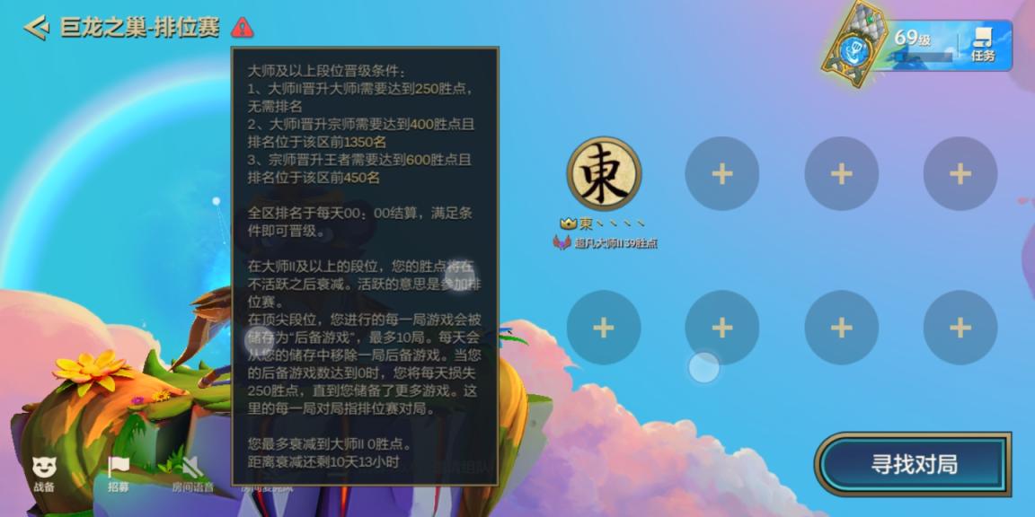 是会掉段的,大师一的要求是有250胜点,低于250胜点后,就会掉到大师二。还有大师二及以上段位,十天不打就会掉分,需要日常维护。
