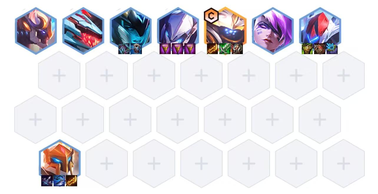 后期阵容:孙悟空、雷克顿、瑟庄妮、瑟提、贾克斯、蔚、蕾欧娜在第一排抗伤,德莱文在最后一排输出。