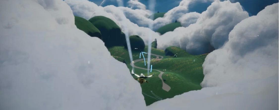 1、首先先进入到云野的地图中,向前飞,飞过云洞之后就会到达云野的一图,也就是图下的位置。