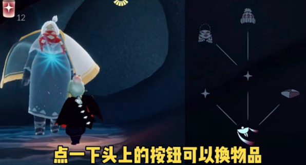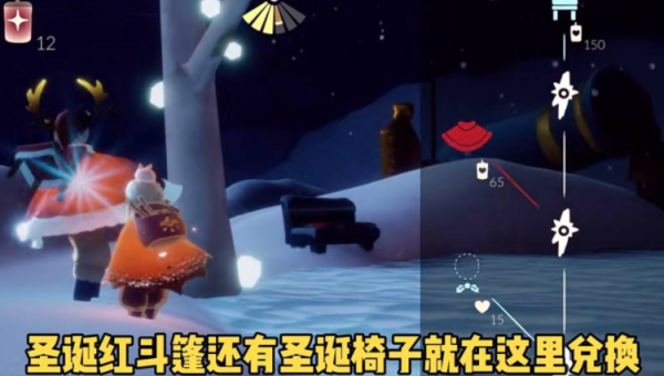 1、在遇境中,可以找到老奶奶先祖,在老奶奶先祖处可以兑换圣诞绒帽,圣诞围巾和暖和的垫子,以及彩色飞行挂尾。
