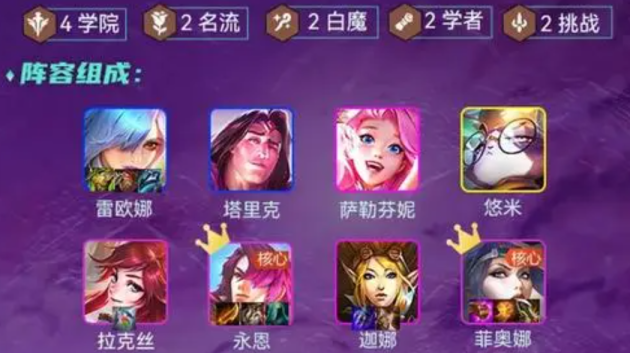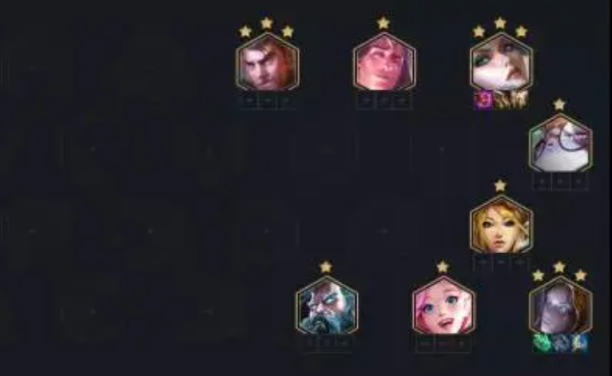 时光守护者 基兰、瓦洛兰之盾 塔里克、风暴之怒 迦娜、星籁歌姬 萨勒芬妮、发条魔灵 奥莉安娜、无双剑姬 菲奥娜(阵容主C)、未来守护者 杰斯、魔法猫咪 悠米