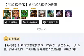 金铲铲之战挑战者狼人主c可以玩挑战炼金狼这个阵容,6挑战搭配3炼金2精密,组成6挑战3炼金2精密羁绊,具体玩法如下:
