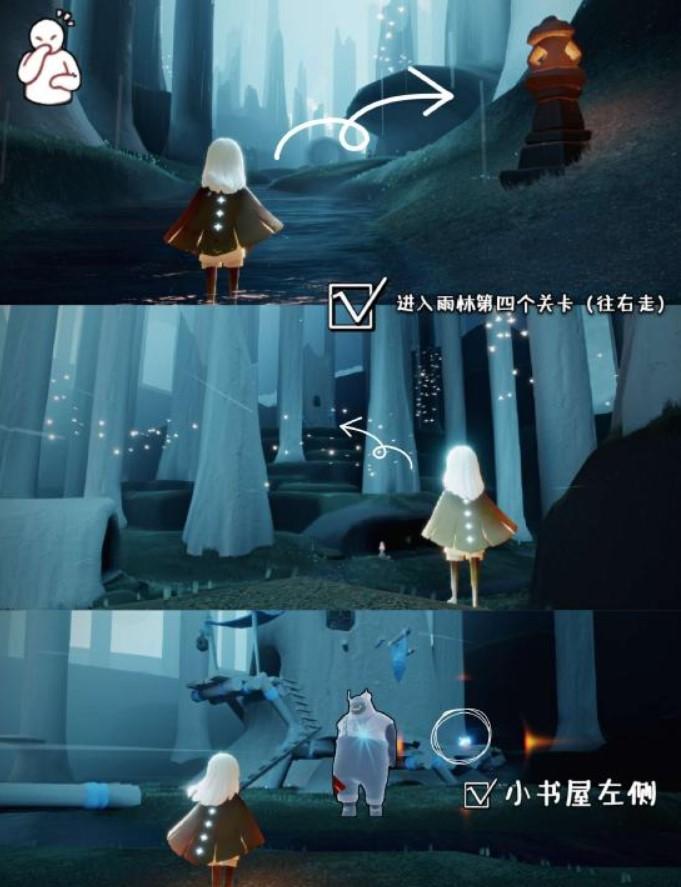 三、先祖位置:雨林第四个关卡,他在小书屋的左侧站着。
