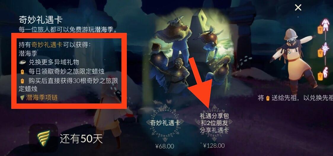 1、想要拼季卡,首先需要购买128的礼遇分享包季卡,这个分享包中有一个主卡,两个副卡,主卡是礼包购买人的,副卡是可以和别人分享的。