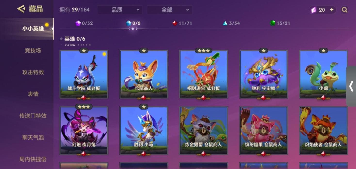 1、首先登录游戏后进入藏品-小小英雄中,图标中央没有小锁子的都是已经获得的小小英雄。