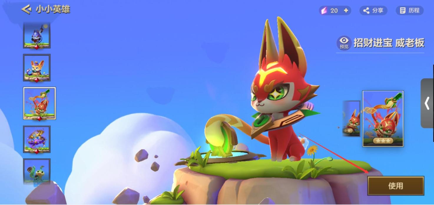2、点击任何一个已经获得的小小英雄,就会进入如下界面,点击使用即可更换小小英雄。